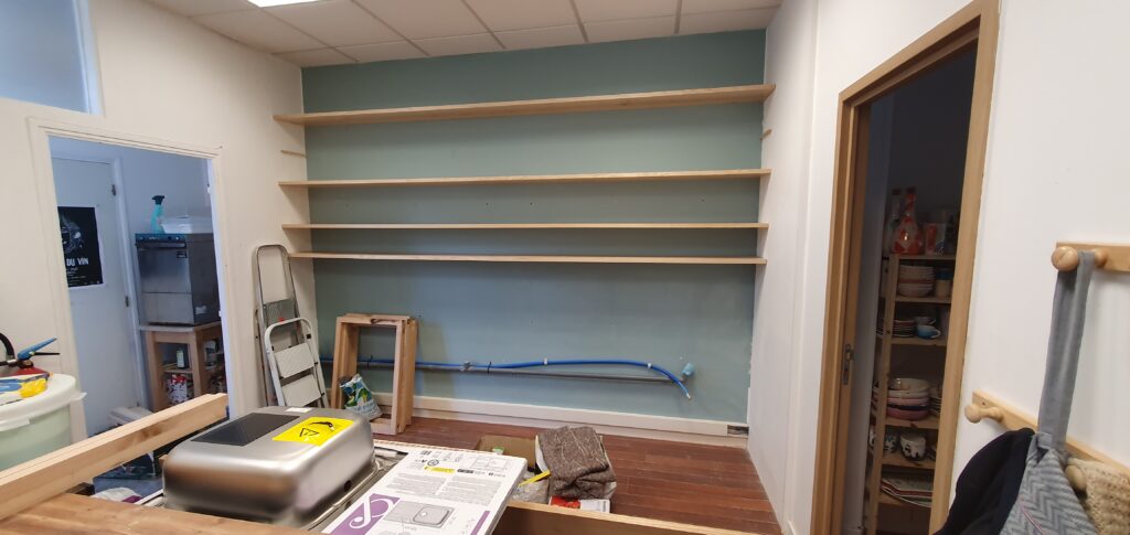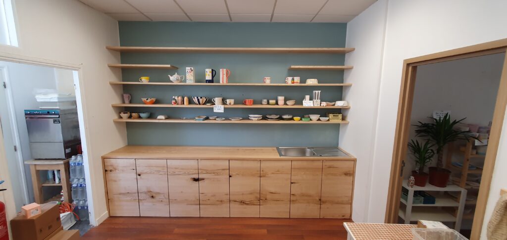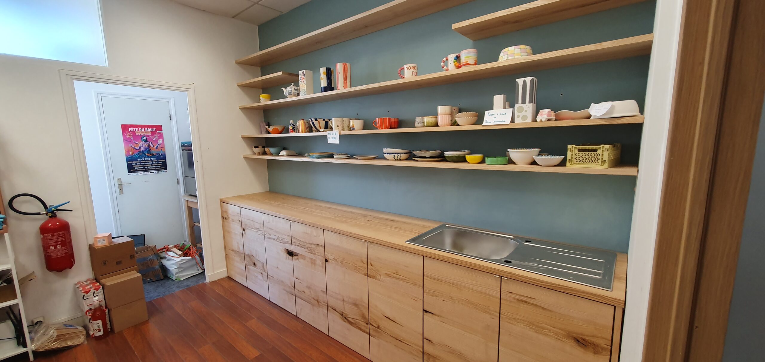Afin d’optimiser leur espace de travail, Manon et Juliette m’ont sollicités pour créer un plan de travail et des étagères, afin de ranger leur matériel et entreposer les créations en céramique de leurs clients, réalisés au cours de leurs ateliers.